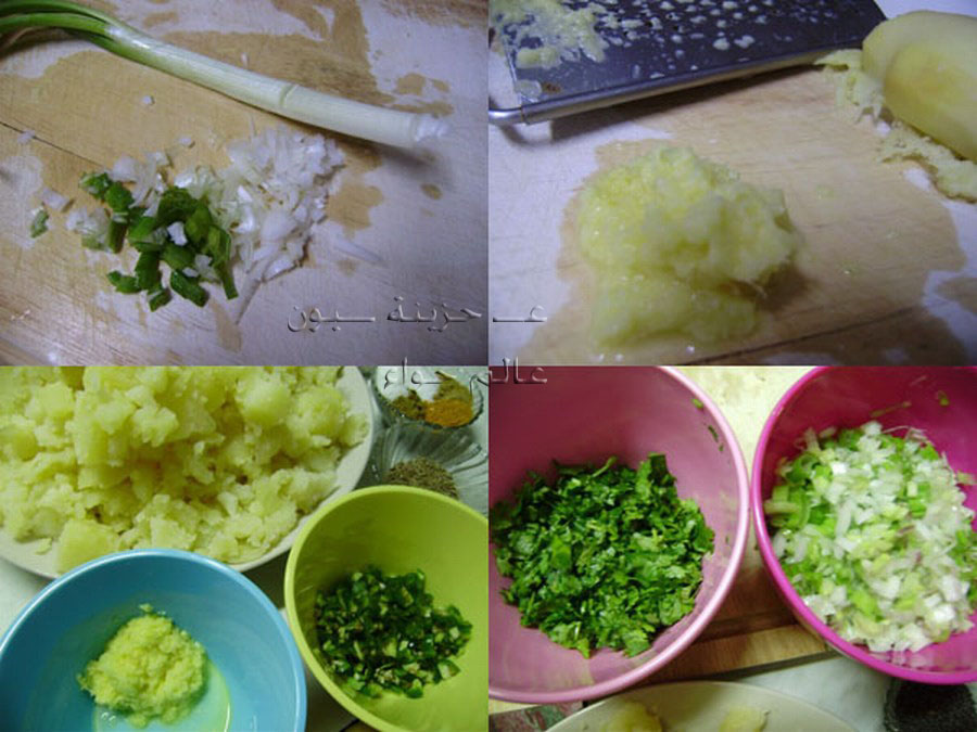 4 حبات بطاطس كبيرة مسلوقة ومقطعة مكعبات