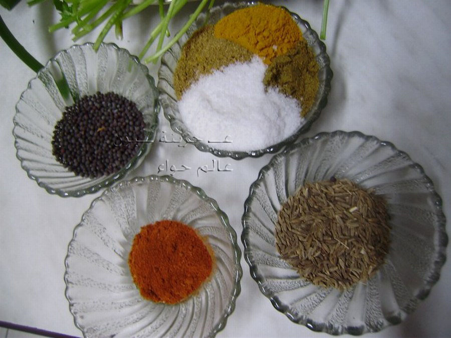 1 ملعقة صغيرة لكل من / كركم / / كزبرة / كمون / ملح