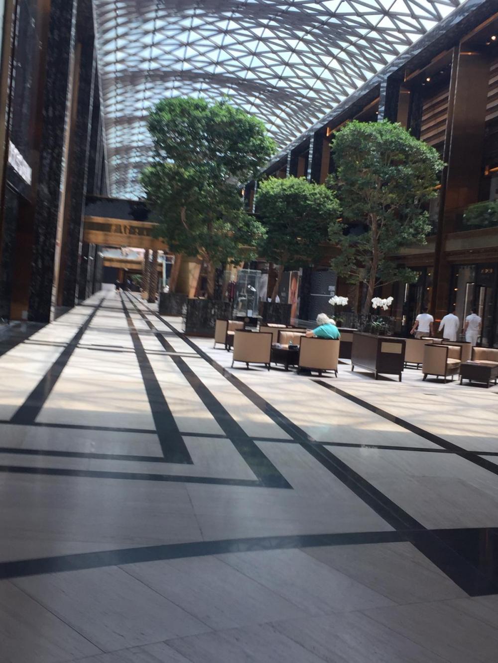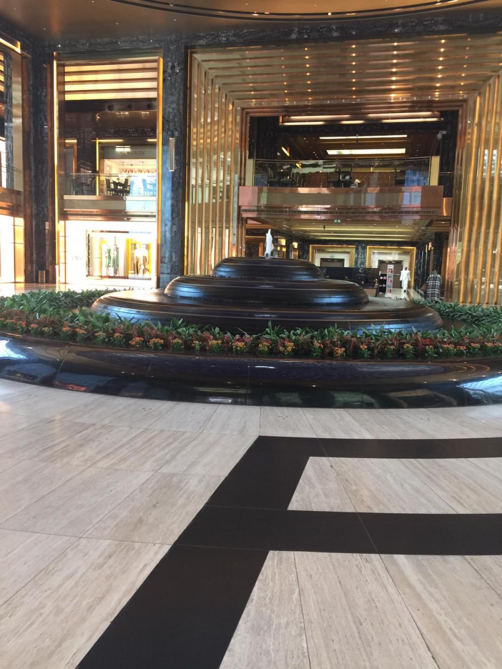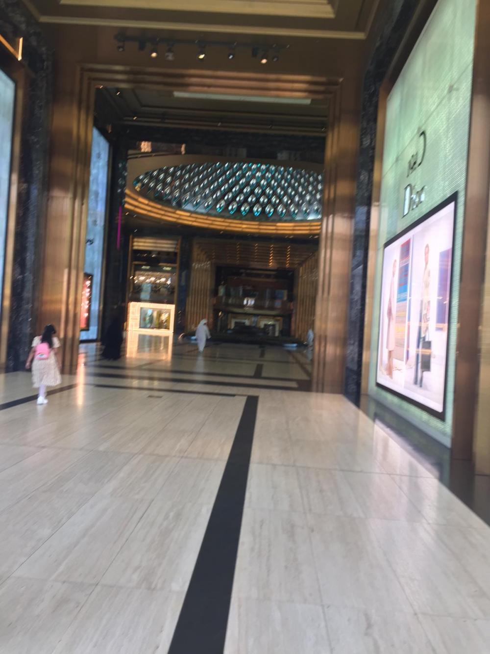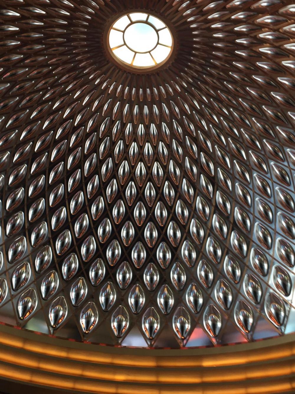 ولاحظي جمال السقف الذي تتراوح فيه الوان الإضاءات