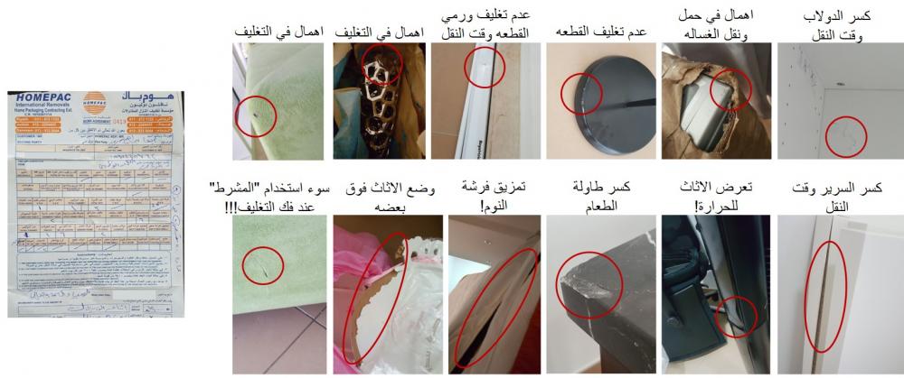 - كسر السرير والدولاب وطاولة الطعام لاهمالهم في رفع وانزال الاثاث