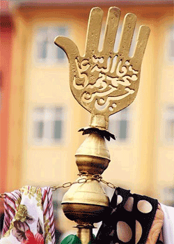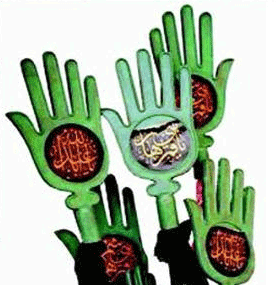 كف العباس : صورة كف مكتوب في وسطها أسماء آل البيت أو قمر بني هاشم أو يا عباس ، وضعها الشيعة كرمز لكفي العباس ابن علي بن أبي طالب رضي الله عنهما .. والذي يزعمون أنه قطعت كفاه في واقعة كربلاء و هو يحاول ايصال الماء لأطفال الحسين عليه السلام ، وقيل أنها تشير إلى أهل الكساء الخمس عليهم الصلاة والسلام (محمد ، علي، فاطمة ، حسن، حسين) وغالبا ما توجد هذه الرموز مصورة ومجسمة في الحسينيات أو عند الأضرحة أو بالشعائر الحسينية والتعاويذ والتمائم الشيعية .