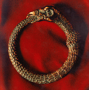 طلسم الثعبان او التنين يعض ذيله uroborus يرمز الخلود الي ما لا نهاية ، وهذا الشكل في العصر الحديث ، أصبح رمزا الرياضية العلمانية لانهائية من حيث العدد والزمان أو المكان.