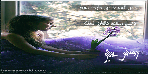 الصورةَ المرادَ التصميمَ بهأآ :اسفه والله ماعرفت احط الرابط هاذي الصوره الكلمات : جعل السعاده وين مارحت تلقاك وعسى البسمه ماتفـارق شفاتك الحقوقَ : (ريماس غالي ) × ( forum.hawaaworld.com ) مواصفاتَ التصميم : التوقيع ثابت التاثيرات على ذوقكم بس يالت تصغرون من حجم الصوره ماأبي يطلع اضغطي هنا لمشاهدة الصورة بحجمها الأصلي<<اتمنى انكم فهمتو علي وياليييت الخط يكون بنفس طريقة الخط هاذا متفائله رغم كل شيئ...الخ وتكبرونه زياده واذا ماقدرتو عادي مافيش مشكله اي خط ع ذوقكمالصورةَ المرادَ التصميمَ بهأآ :اسفه والله ماعرفت احط الرابط هاذي الصوره الكلمات : جعل السعاده...