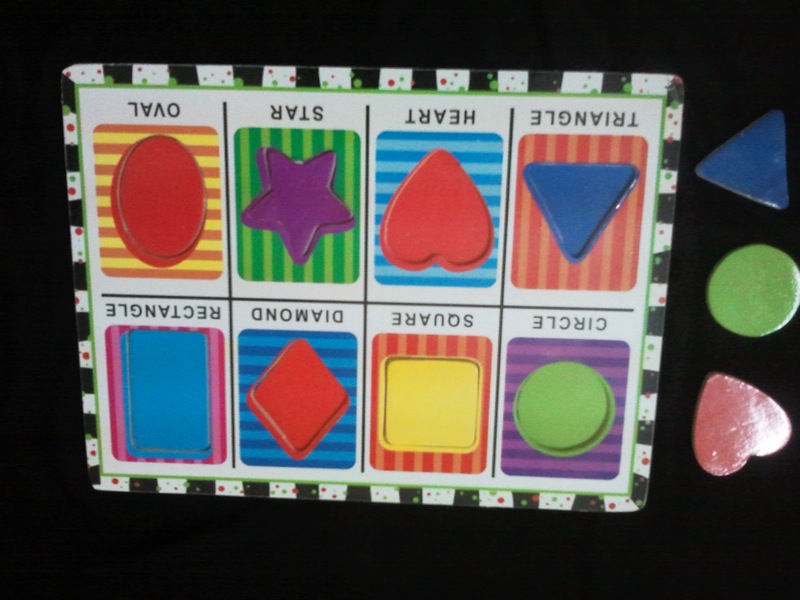 بالبداية لقيت بنتي تضع كل القطع بشكل صحيح ماعدا البيضاوي والقلب والمعين تلخبط بينها فعرفت انها تطابق الالوان مو الاشكال هههه