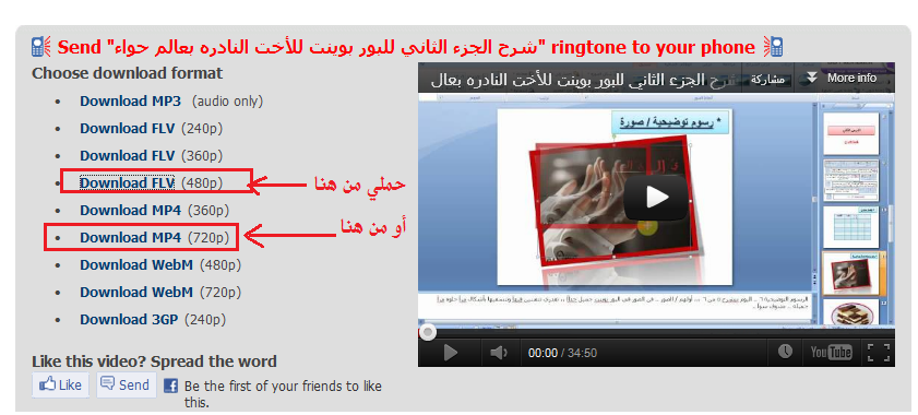 بتطلعلك صورة المقطع الي بتحمليه وجنبو صيغ كثير اختاري الي تفضليه