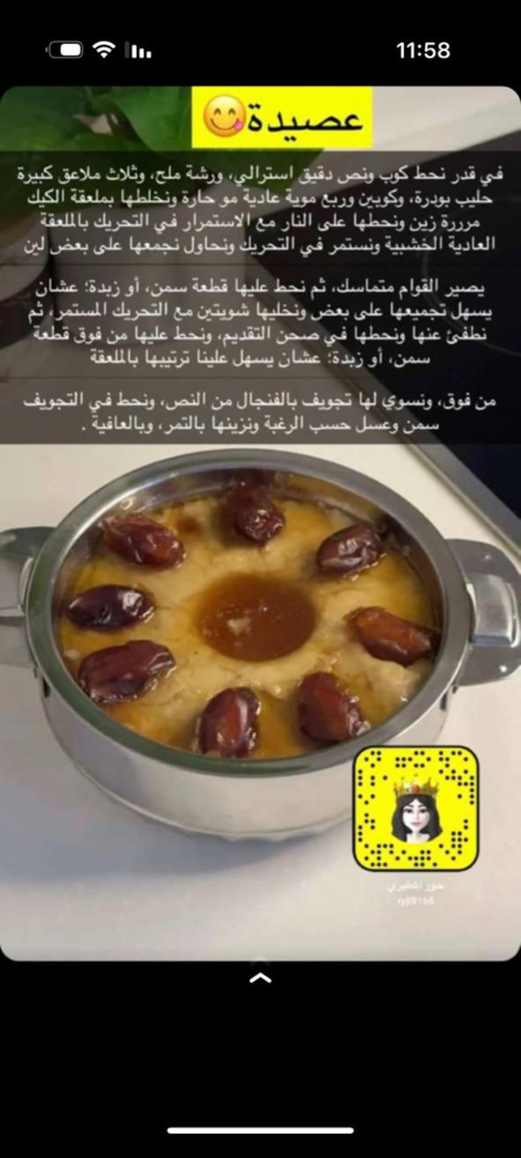 صحتين على قلبك طبعًا استغربت كيف تعرفيها🤔 لأن العصيدة أكلة ليبية بإمتياز ما كنتش نعرف إن في الخليج تعرفوها نقدموا فيه في مناسبة النفاس أساسية بالعسل والرُب (دبس التمر) و الزبدة وزيت الزيتون أه منك جت في خاطري نموت فيها بس ليا فترة صارت توجعلي في معدتي معش ناكل فيها، نحبوا فيها في الشتاء تكون دافية ومشبعة وتسمن😃 يكون لونها أبيض عشان الدقيق(الطحين ) لونه أبيض أما البنية نضيفولها في حلبة مرحية وهذا النوع خاص بالنفاس بس بنسألك هل هي أكلة شعبية عندكم ؟صحتين على قلبك طبعًا استغربت كيف تعرفيها🤔 لأن العصيدة أكلة ليبية بإمتياز ما كنتش نعرف إن في...