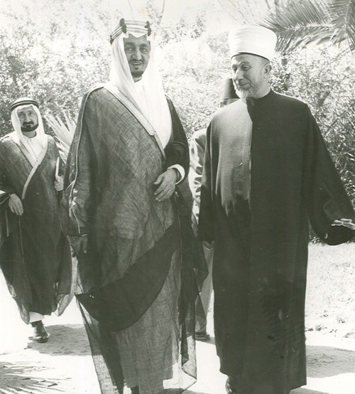 الملك فيصل في زيارته لبريطانيا وبعد قرار هيئة الأمم المتحدة القاضي بتقسيم فلسطين إلى دولتين طلب من أبيه قطع العلاقات الدبلوماسية مع الولايات المتحدة ولكن طلبه هذا لم يجاب. وكان قد زار القدس لأول مرة في حياتة بعد حيازة الأردن لها بعد حرب 1948 وذلك في عام 1385 هـ الموافق لعام 1965 وأكد على نيته زيارة القدس للمرة الثانية بعد تحريرها من الصهيونية والصلاة في المسجد الأقصى. وكان قد هدد الغرب بإغلاق جميع آبار النفط إذا لم تعد القدس للمسلمين