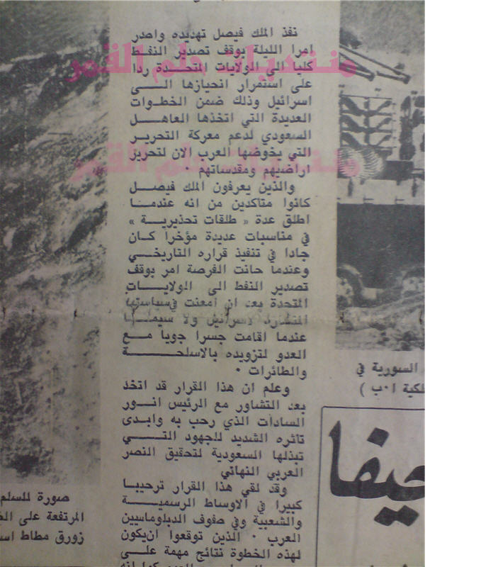 إن القوة التي يتمتع بها الملك فيصل، تجعله يستطيع بحركة واحدة من قبضة يده أن يشل الصناعة الأوربية والأمريكية، وليس هذا فقط، بل إنه يمكنه خلال دقائق أن يحطم التوازن النقدي الأوروبي ويصيب الفرنك والمارك والجنية بضربات لا قبل لها باحتمالها. كل هذا يمكن أن يفعله هذا الرجل النحيل، الجالس في تواضع على سجادة مفروشة فوق الرمل