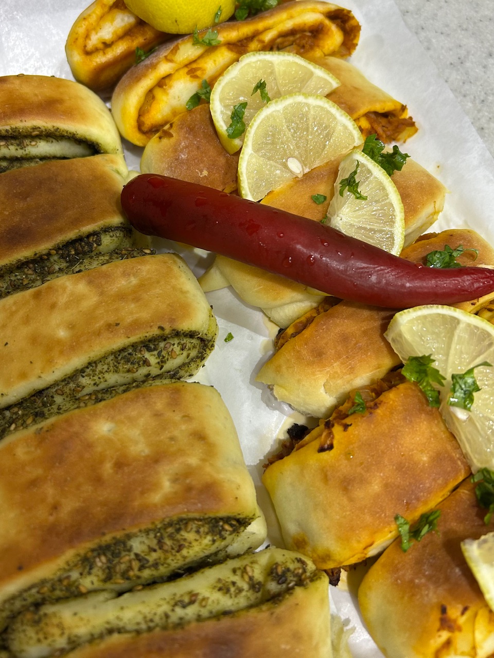 سويت معجنات تونه وزعتر وهم عليهم الحلا. والشاي