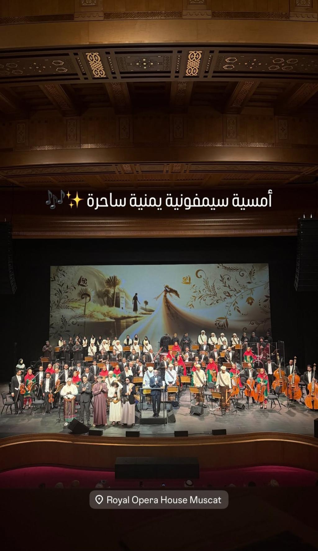 *وهذي من حفل فني بدار الأوبرا السلطانية حضرته مع زوجي الله يحفظه🤍🤲🏻 لأجمل أمسية موسيقية سيمفونية يمنية🇾🇪✨️🎶 🫶🏻😍❤️🌹...عشنا فيها عذوبة اللحن اليمني الذي يشبه بساطة وجمال الطبيعة💚🏞 وينهمر كالمطر في الغابات🌧 خفيفًا منعشًا ينشر فيها الحياة ومحفوفًا بالرائحة العطرة والصوت الجميل كخلفية مؤازرة للحن🇾🇪🎶... ويشرق في النفس بالفرح كالضوء خافتًا ✨️ويتراءى لها كالبحر عميقًا❤️ بليغًا💚 حنونًا🤍 أزرقًا💙 وكالسماء عاليًا👑 رفيع💎 وقريبًا🫂 من كل القلوب كالحب💕 حين يسكنها ويجعلها بين شجن وحزن وفرح متزن 🇾🇪✨️😍❤️🌹...
