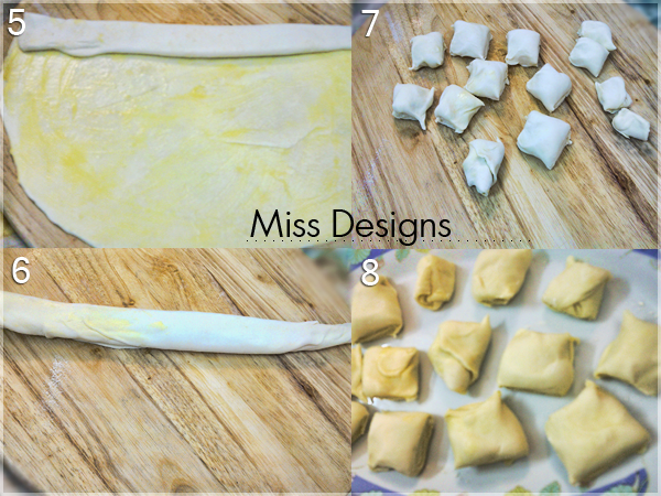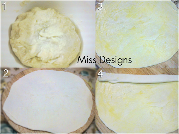 نقسمها قسمين و نفرد كل قسم ثم ندهن وجهها بالسمن جيدا و نبرمها