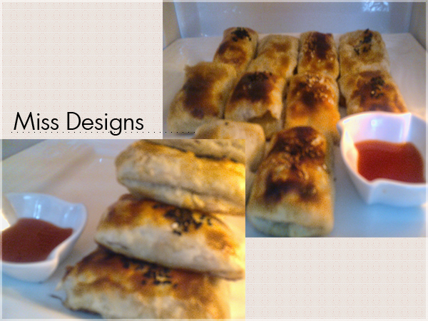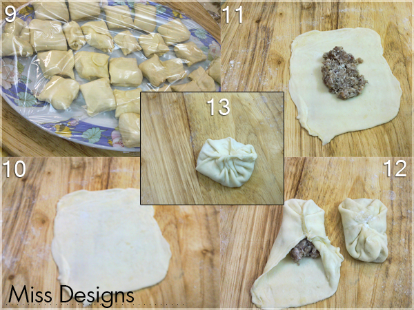 نفرد العجينه و نحشيها باللحمه و نلفها اما بالضفيرة