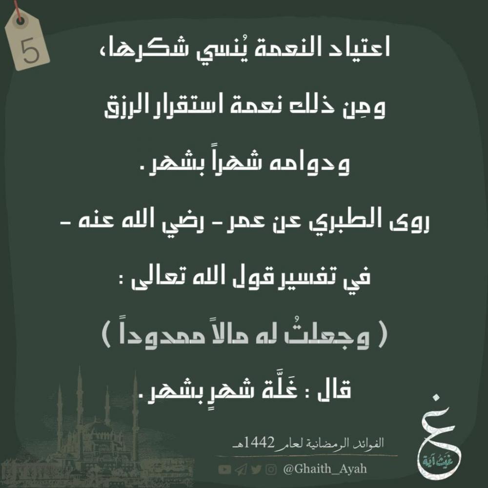 ومِن ذلك نعمة استقرار الرزق ودوامه شهراً بشهر .