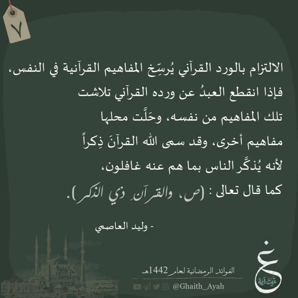 الالتزام بالورد القرآني يُرسِّخ المفاهيم القرآنية في النفس،