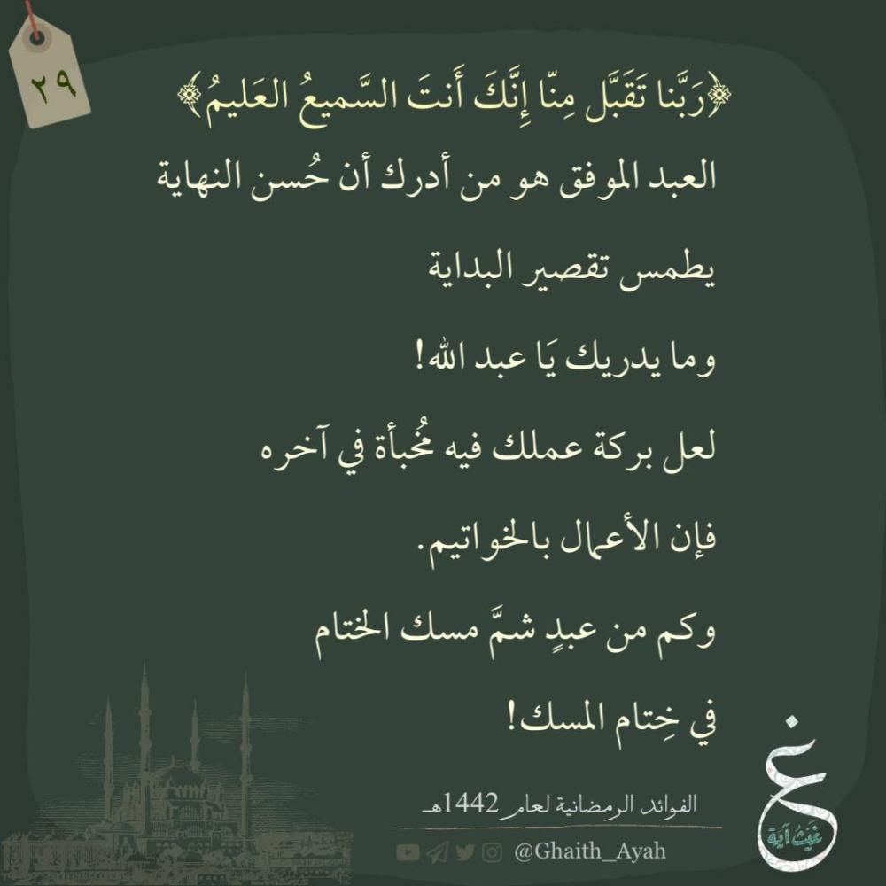 وكم من عبدٍ شمَّ مسك الختام في خِتام المسك!