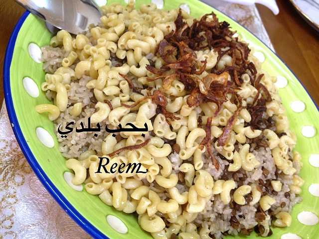 تخلي المكرونه طبقه اولي ثم الرز ثم العدس
