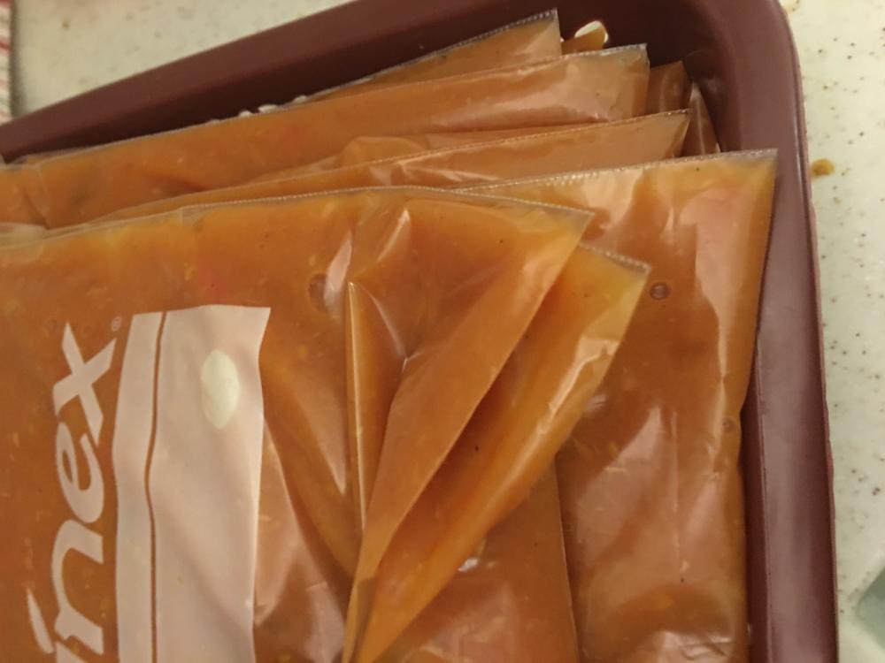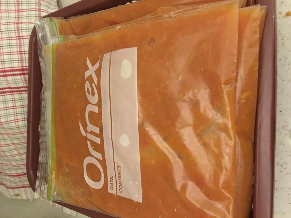 نفرمها بالفرامه اليدويه او اللي ماعندها تنتظرها تبرد وتخلطها بالخلاط وبعدين نكيسها او نحطها بعلب بلاستيك بس انا افضل الاكياس ماتاخذ مساحه في الفريزر