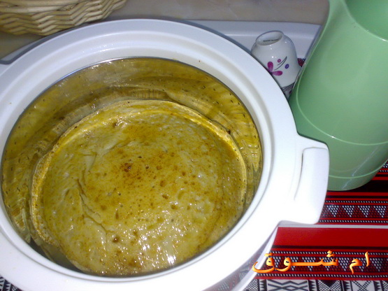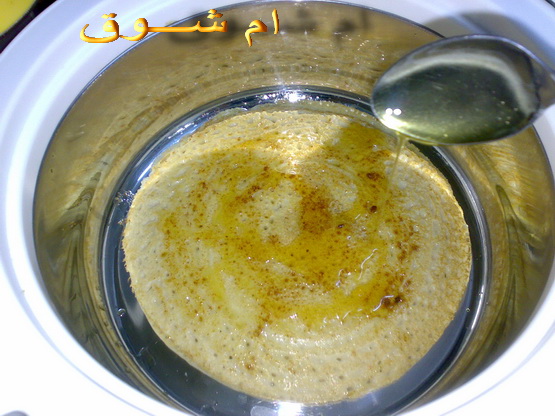 وكل ما شلتي وحده حطيها بالحافظه وحطي عليها ملعقة سمن وملعقة عسل ووزعيها وغطي وهكذا