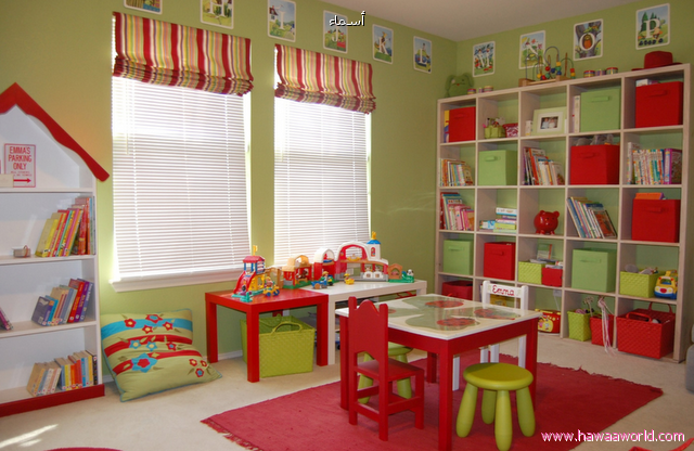 اما اذا احببتم ان تكون غرفهم هادئه كالكبار وعدم ادخال الالوان الصارخه فممكن وننصح بادخال الوان من درجات الاحمر والازرق والمشمشي الهادي والوردي الفاتح ودرجات الاخضر الاغمق
