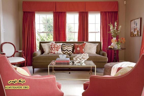 والجزء الثاني راح يكون الصالون اللي قلت لك عنه واهم شئ الستاير تكون من اعلى الجدار الى نهايته وتكون منسدله وغير مكلفه لانك تبغي مودرن ممكن اذا اخترتي الالوان اللي قلتلك عليها تسويها احمر او ابيض او حتى اسود وابيض