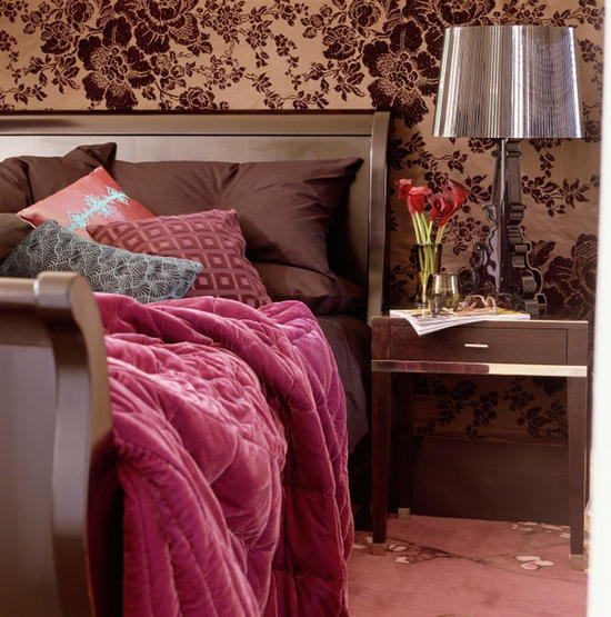 وسوي زي كذا بالضبط راح يطلع شئ بس لاحظي لو ورق الجدران ممكن اللحاف الموف اللي في الصوره الساده تحاولي تخليه زيه اذا بويتك ساااااده اما اذا كان فيها نقش خلي كل شئ زي ماهو مررررررررره عجبتني الالوان