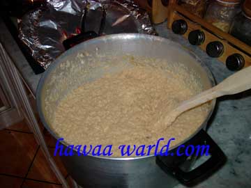 بعد مرور الوقت .. ارفعي الغطاء عن القدر ثم اضربي الجريش بمضرب خشبي قوي حتى ينهرس جيدا ..