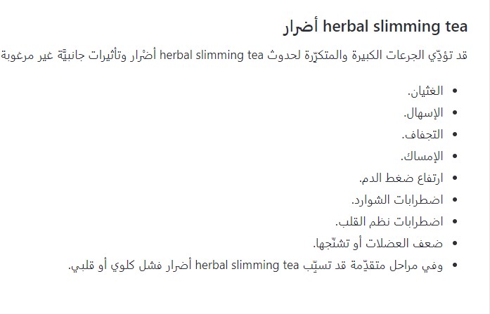 ما جربته ولا اعرفه اعملي عنه بحث بسيط بقوقل وراح تلاقين الاضرار اللي ممكن يسببها بحاول احط لك صوره من الاضرار اللي ممكن توصل لفشل كلوي او قلبي . وكذلك كاتبين معلومه انه لم يثبت فعالية شاي سليمنج في حرق الدهون كما أنَّها لم تخضع لتقييم الـFDA، إنَّما تحتاج إلى ممارسة الرياضة والحمية الغذائيَّة الصحيحة لخسارة الوزن. ولما قرأت مكوناته بعضها تعتبر ملينات للبطن مثل السنا مكي يعني هي تنظف البطن ما تحرق دهون