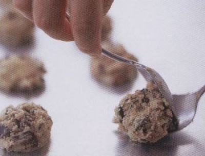 واغرفي بملعقة الايس كريم الصغيره ورصي بصينيه الفرن الكبيره