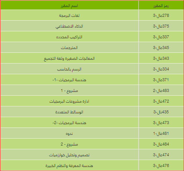 اللهم فيه بعض المواد الاختيارية نأخذها من كلية العلوم