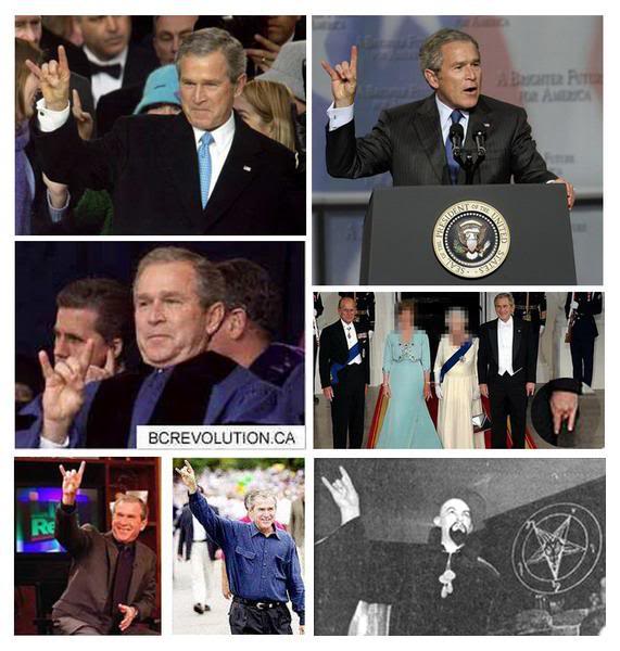 وعادة ما كان يشير جورج بوش بالرمز الشيطاني “إل ديابلو El Diablo” ليس وحده فقط بل هناك الكثيرين غيره من الشخصيات السياسية البارزة. وهذا تعبيرا عن ولائهم للمنظمات السحرية الماسونية التي ينتمون إليها. وتلك الإشارة هي رمز الولاء والتحية فيما بين عبدة الشيطان. كما استعملها أنتون ليفي Anton LaVey، مؤسس كنيسة الشيطان رمز السلام كخلفية لمذبحه.