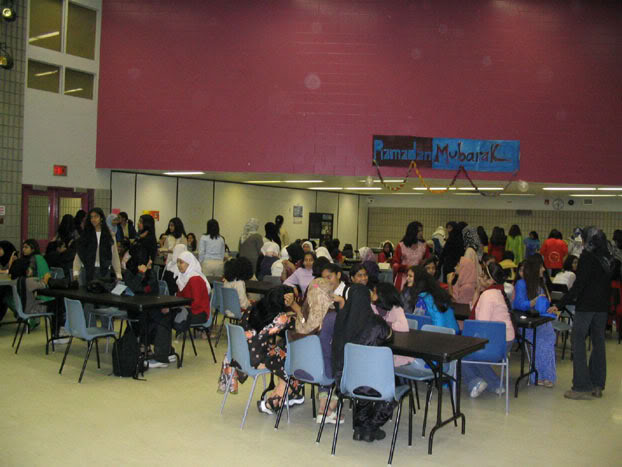 اخر سنه الي بالمدرسة تحسنت امورنا شوي متل ماقلت وسمحو لنا نعمل افطار جماعي ونعزم عليه الكنديين وكان يوم جدا رائع حضر جميع الستاف في المدرسه وحضر كل المسلمين وزيادة عليهم حوالي 200 كندي