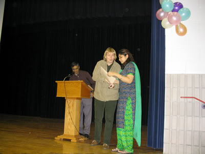 طيب لكل جماعة مسلمه لازم يكون لهم رئيس من الستاف والي كان علينا مسؤول هو هادا وهي المديره عم تعطي شهادة شكر لواحده من البنات اللي كانو مسؤولات عن الام اس ايه (جماعة الطلبة المسلمين)