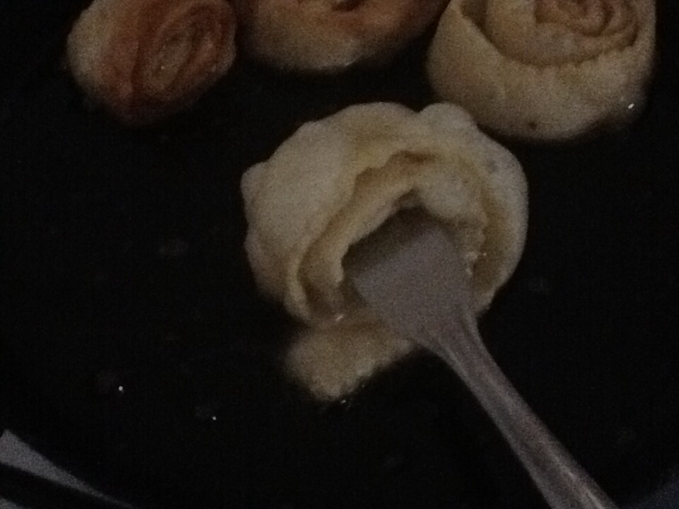 لفي الشريط على الشوكة تجي على شكل وردة و امسكي طرف الشوكة الى ان تنتفخ ***** الله تفهمونني