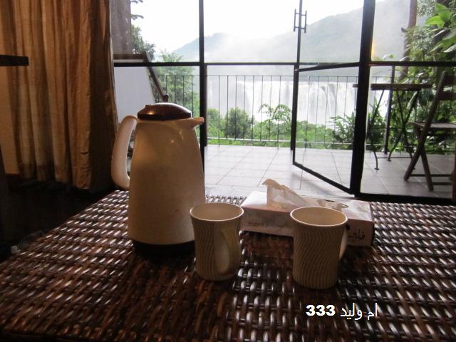 وبعد ما اصبحنا و صلينا الفجر سوينا الشاهي بالحليب و الزنجبيل و كان لذيذ جدا مع الجو البارد وصوت الشلال الذي لم يهدء و هتان المطر الذي لم يتوقف منذ ان وطئت اقدامنا ارض الهند