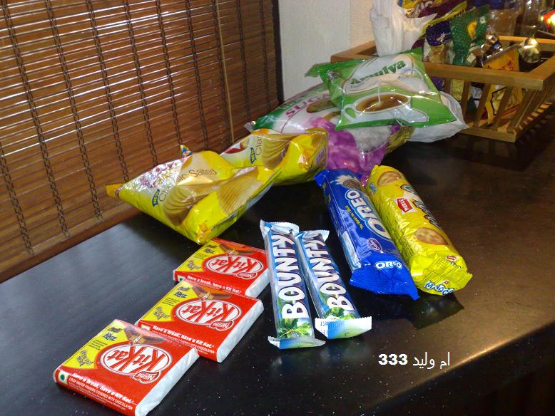 بعض الاغراض الي شريناها من سوبر ماركت مثل بندة بس ما اعرف اسمها موجودة في الاوبرون مول