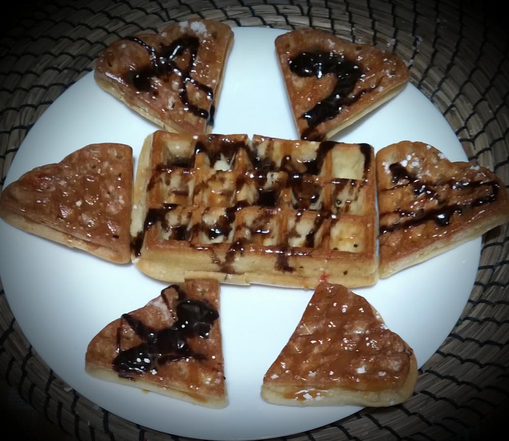 ثم نضعها في ماكينة الوافل او قوالب الوافل السليكون وتدخل الفرن على الرف الاوسط درجة حرارة متوسطة ١٨٠ لمدة ثلث ساعة تقريبا او حتي تمام النضج