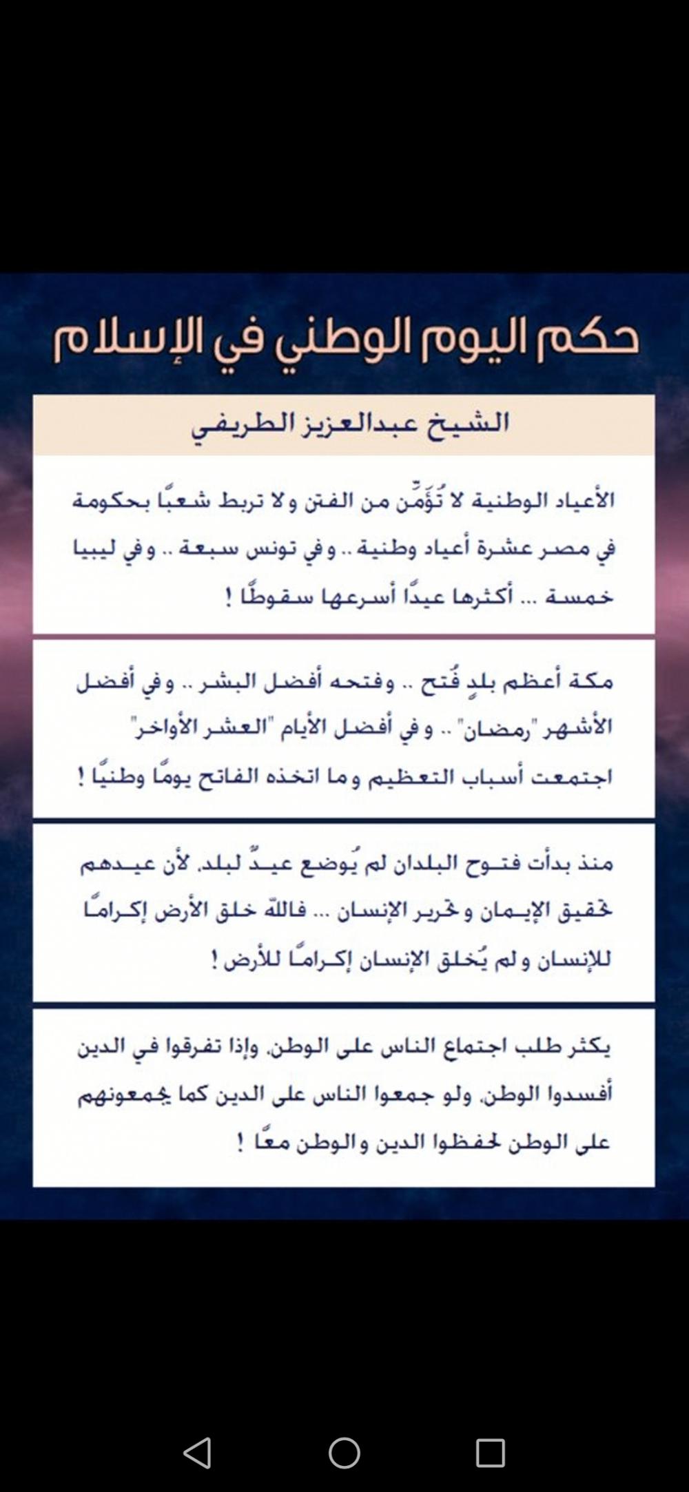 الإحتفال باليوم الوطني بدعة مثله مثل الإحتفال بعيد الميلاد.. قال صلى الله عليه وسلم: (كل بدعة ضلالة وكل ضلالة في النار)