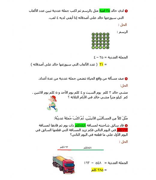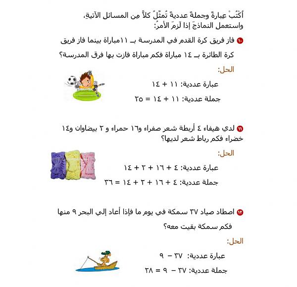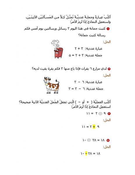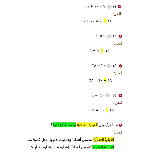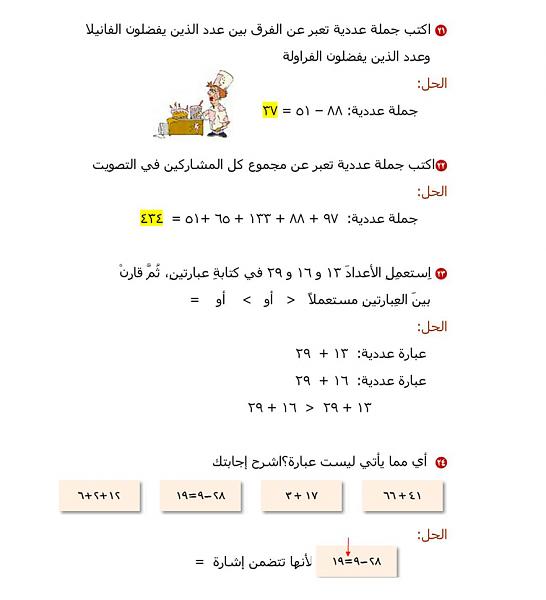 الدرس الآول :تمثيل الجمل العدديه وكتابتها