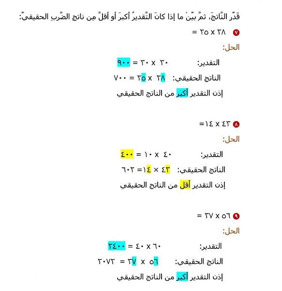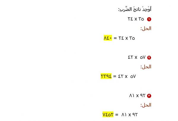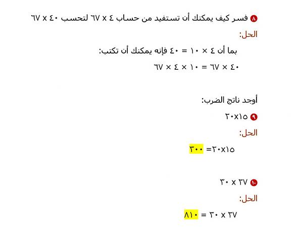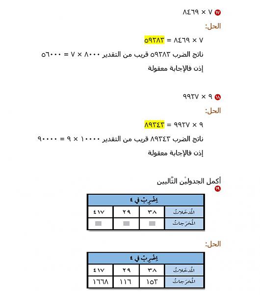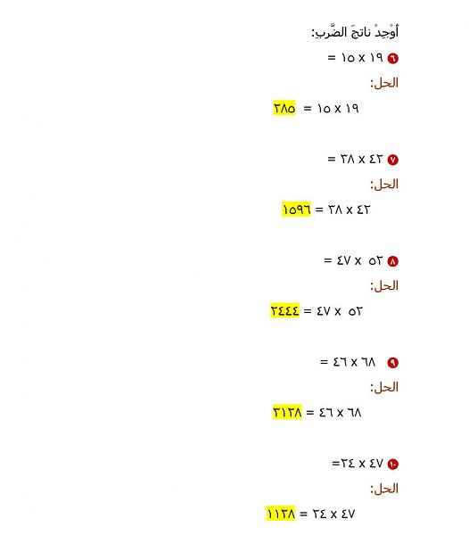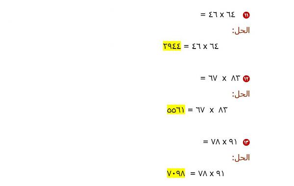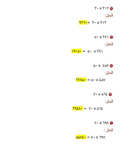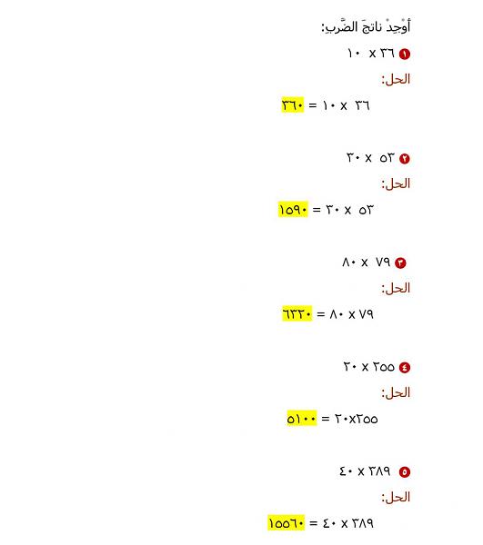 الدرس السابع:الضرب في أعداد كبيرة