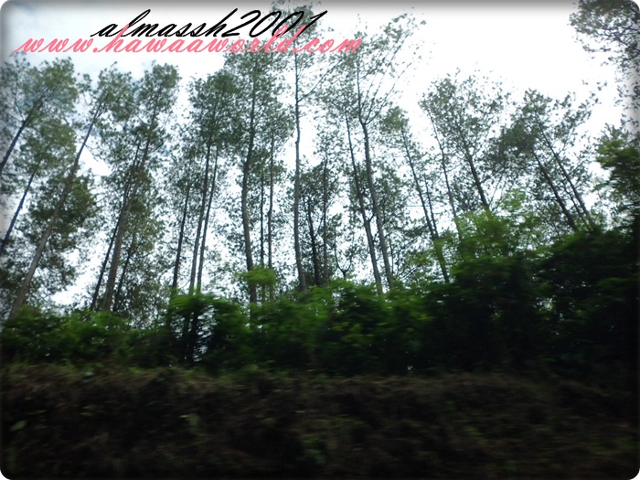 ثم اشجار المطاط ...المفروض نرى طريقه استخراج المطاط من الاشجار ...لكننا اكتفينا بالمشاهده من بعيد