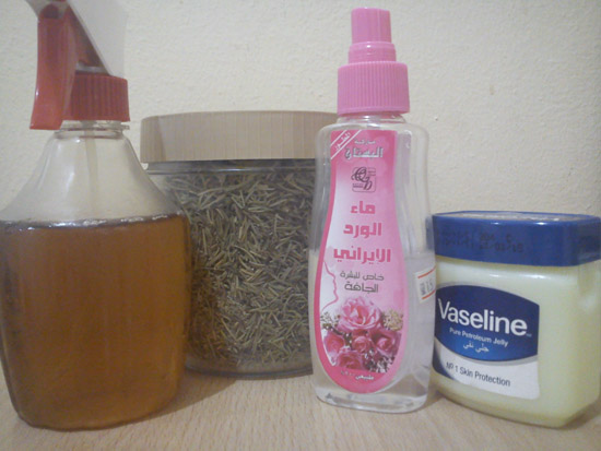 وكل يوم ارش من منقوع اكليل الجبل على فروة شعري وادلكها