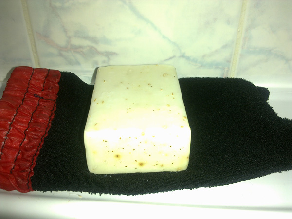 وهنا صورة الليفة المغربية مع صابونة التقشير استخدمها بعد مقشر المشمش