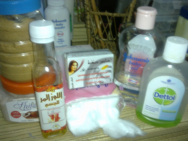 وهدي صورة للاغراض اللي استخدمتها بالخلطة قبل الحمام للجسم اختها من المنتدى كتير بيمدحوا فيها