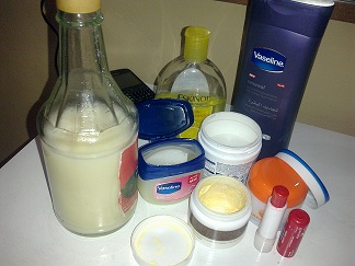 وطلعت ورطبت جسمي بفازلين البنفسجي وايدني ورجليني بفازلين عادي