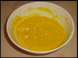 بعدها صنفره وهي سكر وزيت الوز المر وخطلتها في الخلاط الين صارت كانه خليط كيك وتفركت فيه وغسلت