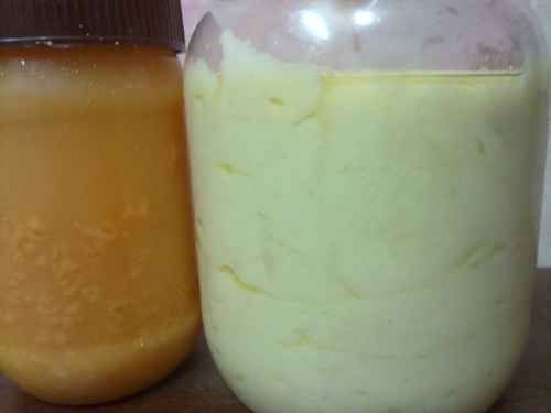 غلا / سالتيني عن تغير لون الخلطه ؟ اذا متغيره كثير اتركيها واذا بس الطبقه الي فوق شيليها وحطيها ف الثلاجه
