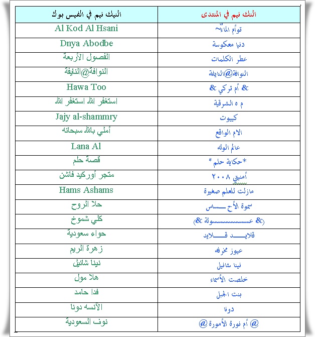هذا هو الجدول بنكاتنا في المنتدى ويقابلها نكاتنا فـ الفيس بوكٌٍ :27: