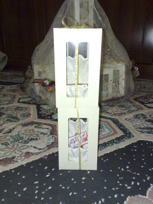 تاخدو عربية ملكة تحطو فوق طقم الشبكة والدبل وبعدين تحطو عودة خشب وعودة سايل وتحت تحطو الهدايا طبعا عطور او شنطة فخمة وساعات عحسب ميزانيتكم وكمان لاتنسو تحطو قران مصحف صغير ذهبي جنبب الشبكة احنا سويناها بملكة اخوي --------- وتلاقية بشوكلاين وباتشي يصلحوها لكم من الى وهما يفهموكو ايش تجيبو وهم يغلفونها لكم -------- ويوم الملكة تدخلو للعروسة فيها
