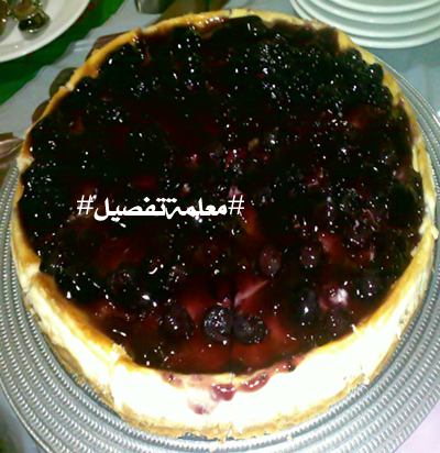 عند التقديم يسكب على الوجه صوص جاهز..انا استخدمت التوت الازرق..ونسيت اصور العلبة..وللمعلومية العلبة تكفي استخدام مرتين..