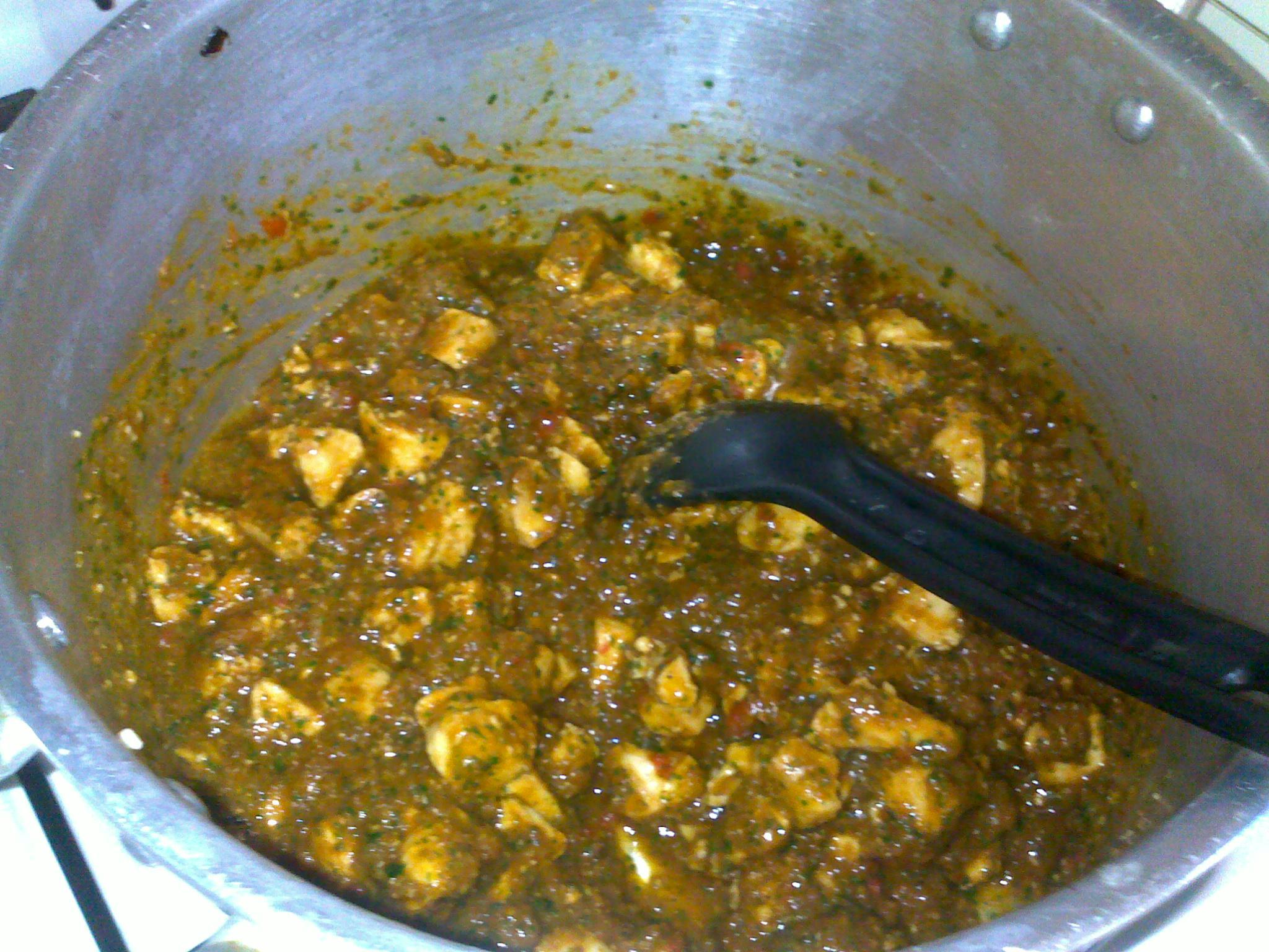 وبعد ما يستوي الدجاج نظيف الخلطة عليه ونقلب ونسيبها تتسبك شوية